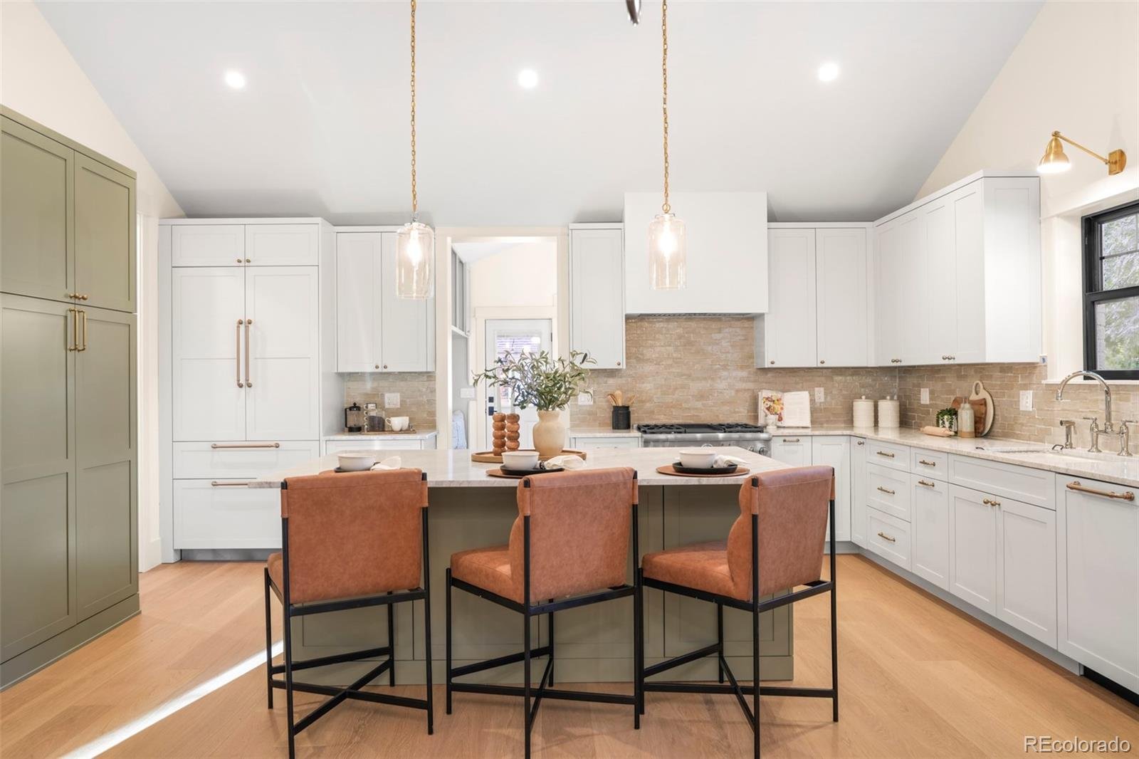This East Wash Park bungalow has been reimagined from the inside out, blending classic character with modern living. The vaulted main floor opens up the home in a way that feels expansive yet inviting — the living, dining, and kitchen flow together effortlessly, grounded by natural light and warm materials. It’s the kind of open layout that makes entertaining easy and everyday living even easier.